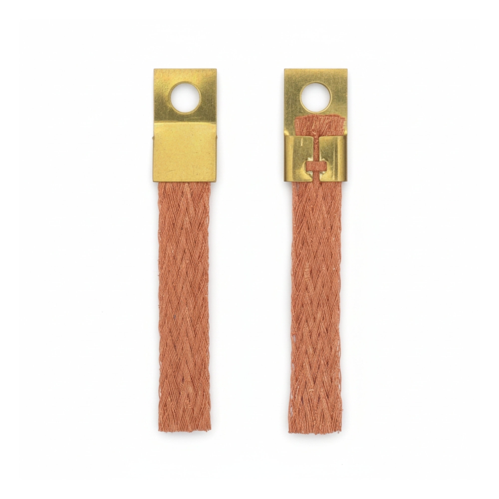 Die Schleifer werden aus einem Kupfergeflecht gefertigt, an einem Ende ist eine Messingfassung mit Bohrloch, damit wir die Schleifer an unseren Slotcars verschrauben können.